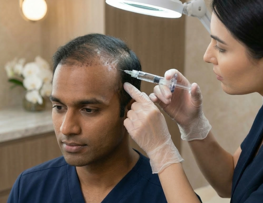 Uses your own blood’s growth factors to strengthen hair roots and stimulate natural hair regrowth. Helps reduce hair fall and improve hair thickness.